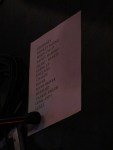 As soon as they decided to do one set and add lots of songs that weren’t on the set list, Sean tore his into shreds and gave it to a young girl sitting at a table near him. Alan gave a guitar pick to another child, and at the end of the show the roadie (whose name I forget) gave picks to all the kids.