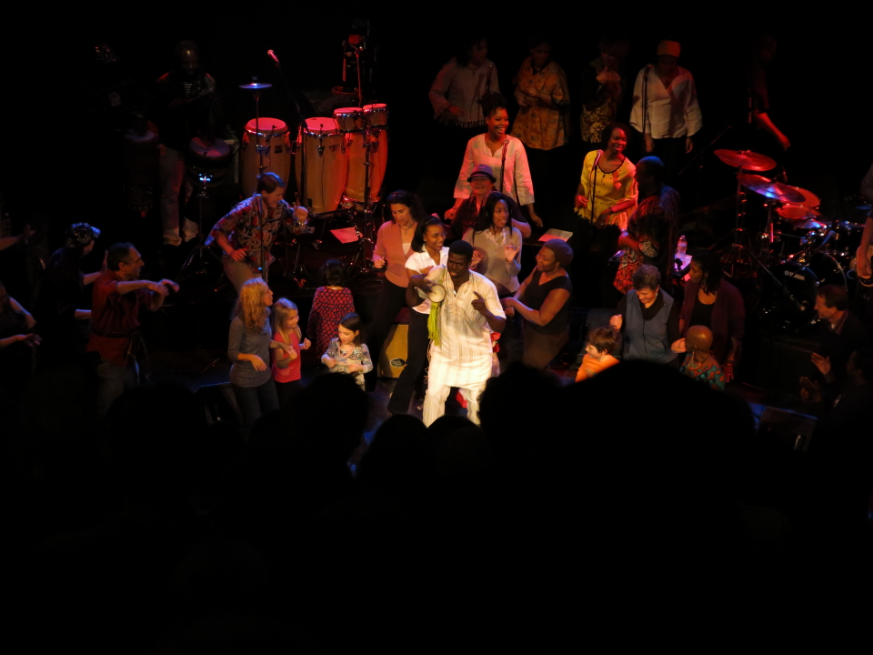 For the last song of her set, Angélique invited about twenty members of the audience to come and dance with her. There were a number of children and she seemed to pay special attention to them while the adults each did about 15 seconds of solo dancing at center stage. It was a great audience participation moment.