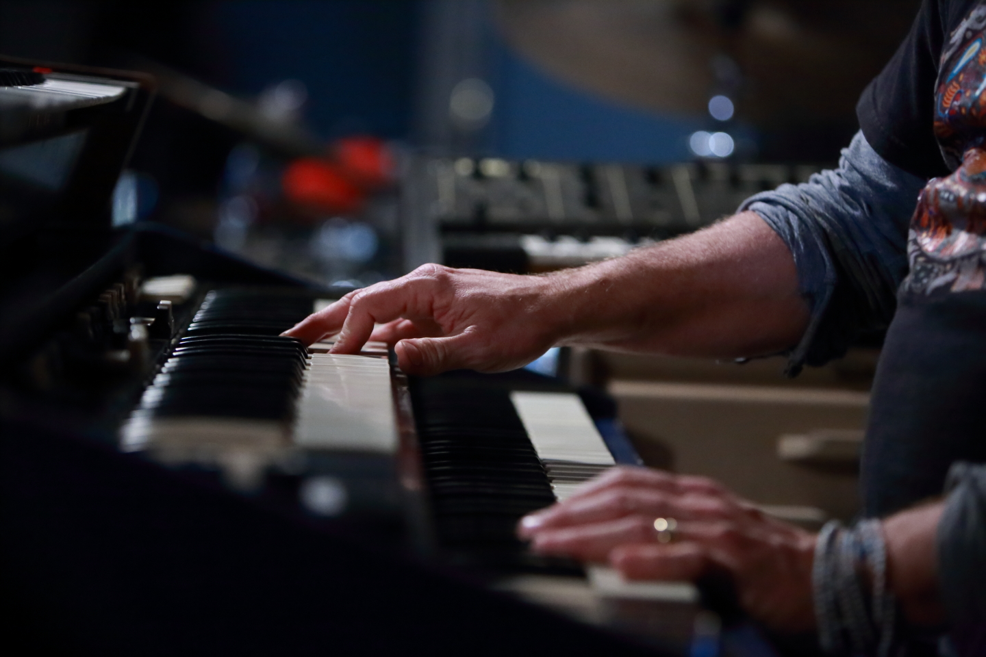 I was seated close enough to Medeski’s keyboards that I could have reached out and played them myself, which was great for watching him. He had five sets of keys along with lots of pedals and buttons to push and it was fascinating to watch as he bent notes and created sounds I never realized a keyboard could make (or that I’d heard but did not realize were being produced by a keyboard).
