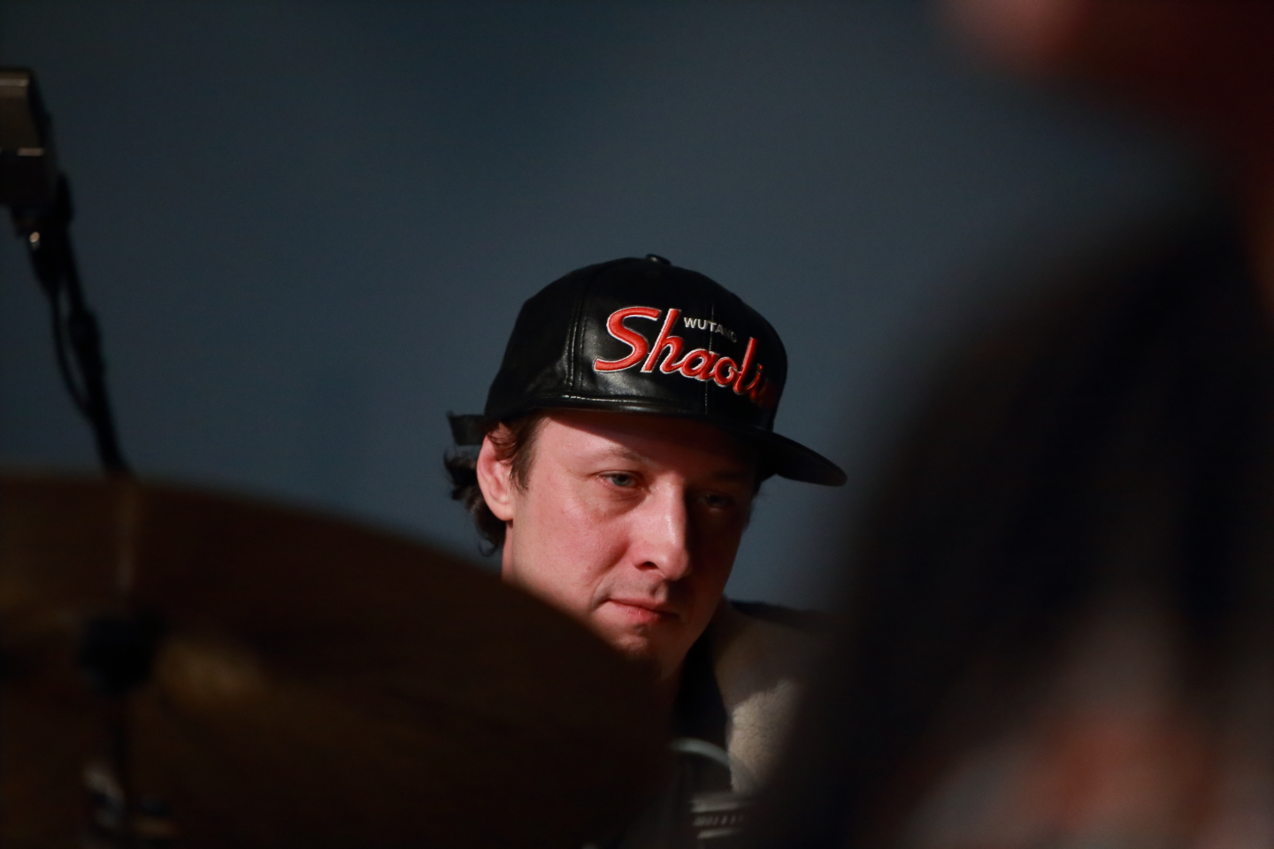 I could not see Deitch well, but he had a number of percussion instruments in addition to a traditional drum kit, including a rain stick. The multi-colored blurry object in the bottom right of the next photo is the rain stick.
