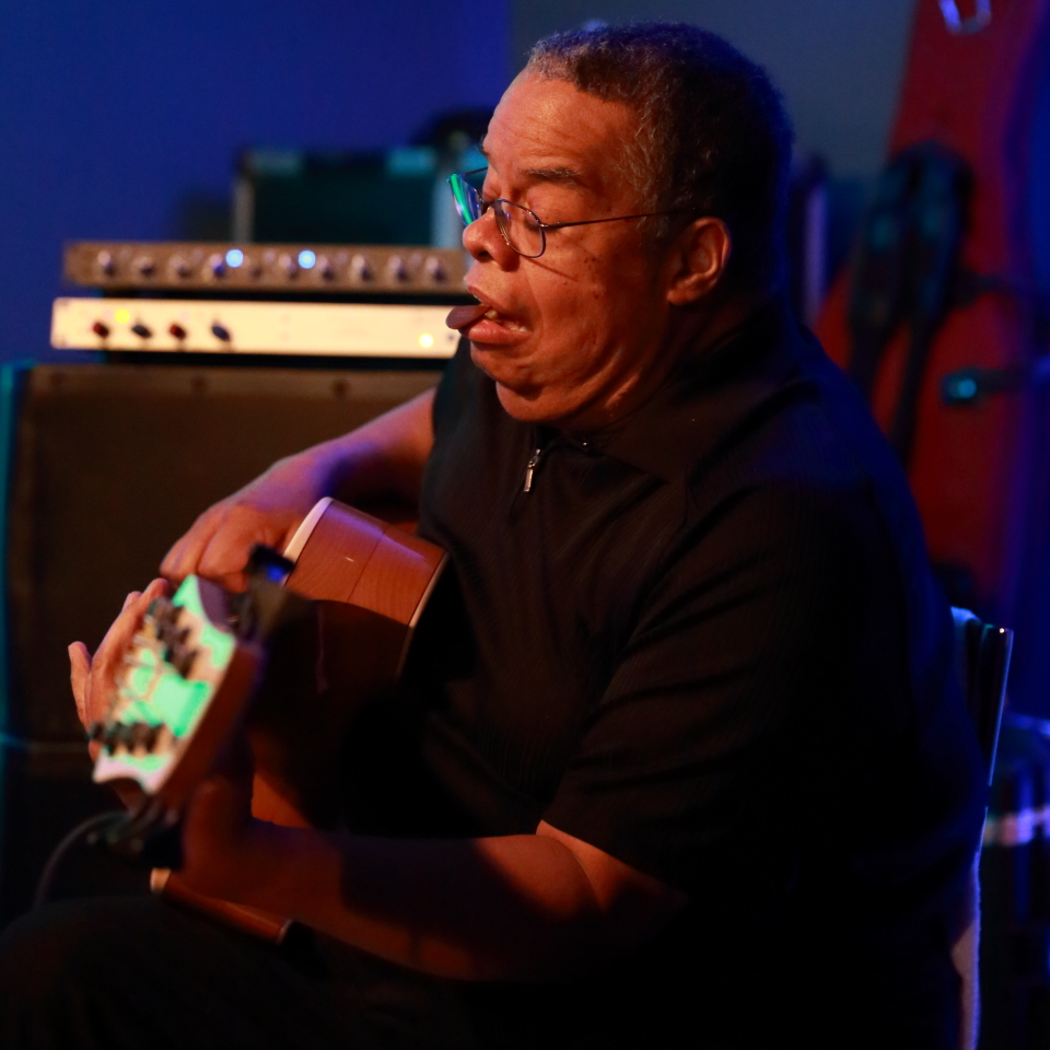 One of the things I love most about watching Mike perform is that he has an impish quality, visible in his reactions toward his fellow performers. He looks almost surprised that he is standing on the same stage as the others, as if he is not sure he is worthy. Sometimes he stands back to watch them; other times he walks toward one of them after a particularly moving solo and tells them it was ‘beautiful, man’ (I was sitting close enough to be able to hear him say it).