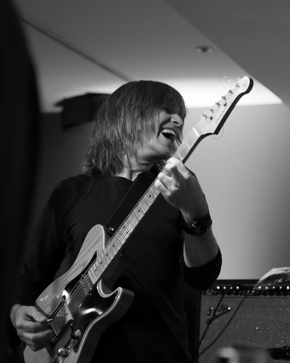 Anthony played one of the most gorgeous bass guitars I have seen. I presume it was custom-made; it’s a six-string bass with strings that looked much thicker than those found on a typical bass. He played it so beautifully, also in conversation with Mike’s guitar at times, and made it look so easy.