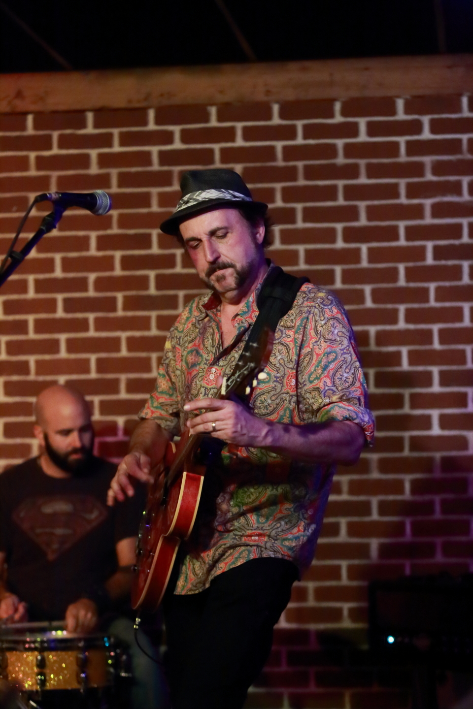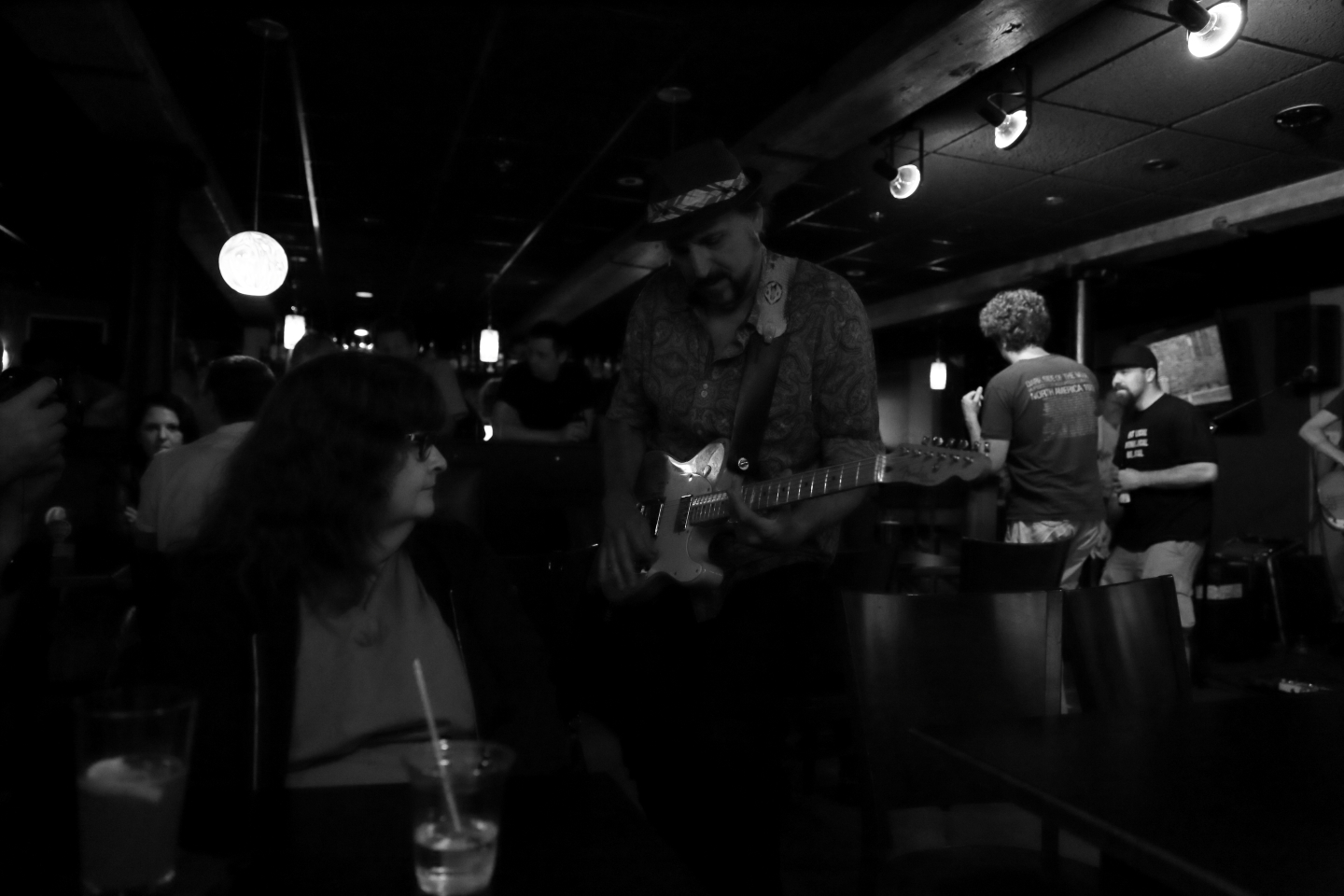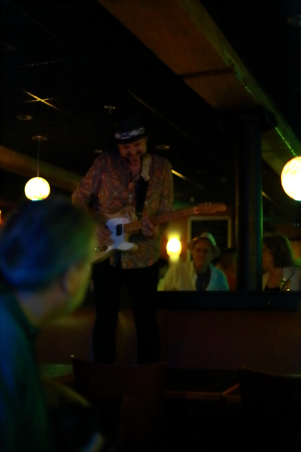 There was a reasonably sized crowd when we arrived at this fairly small venue, but my group was able to snag tables close – but not too close – to the stage. When we arrived, the band was well into its first set of the three they would perform this evening.