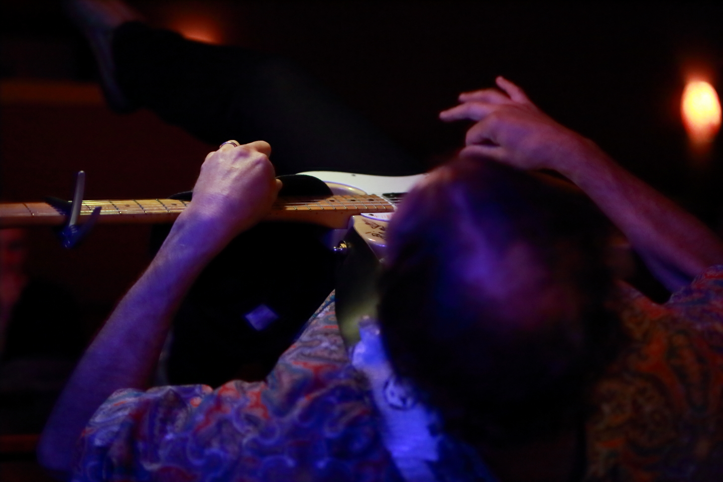 Ted is a performer who knows how to work a room. He played on the stage itself for a small portion of the show, preferring to wander through the audience, sitting on tables, lying on tables, standing on tables, and doing all of the above on a half-wall in the room. I am not sure if he got onto the bar, but it would not surprise me had he done so.