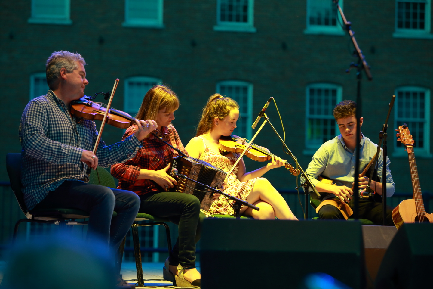 Brian O’Donovan, the curator/radio personality of the weekly WGBH radio show A Celtic Sojourn, came to the Lowell Summer Music Series with a number of Celtic musicians to present A Celtic Sojourn Roots & Branches Festival. This turned out to be a fine evening at Boarding House Park as the rain never arrived.